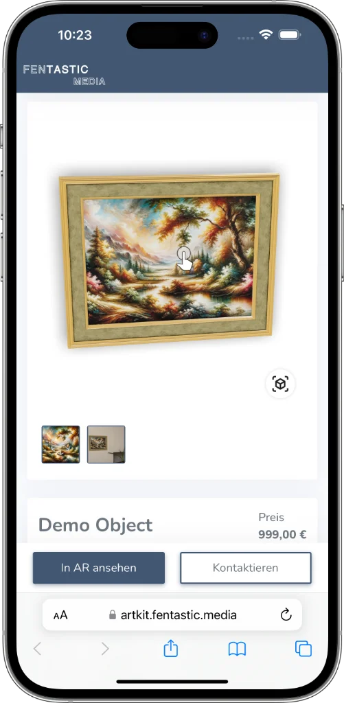 Augmented Reality (AR) ist eine faszinierende Technologie, die es ermöglicht, digitale Kunstwerke virtuell in Ihrer realen Umgebung darzustellen. Mit ARtKit können Sie und Ihre Kunden Kunstwerke direkt in ihren eigenen Räumen betrachten. Diese unmittelbare, persönliche Erfahrung mit Kunstwerken in ihrer gewohnten Umgebung verwandelt Interessenten effektiv in begeisterte Kunden. Unsere Technologie bietet eine einfache, interaktive Art, die Kunst zu erleben und zugleich neue Kundengruppen zu erschließen.